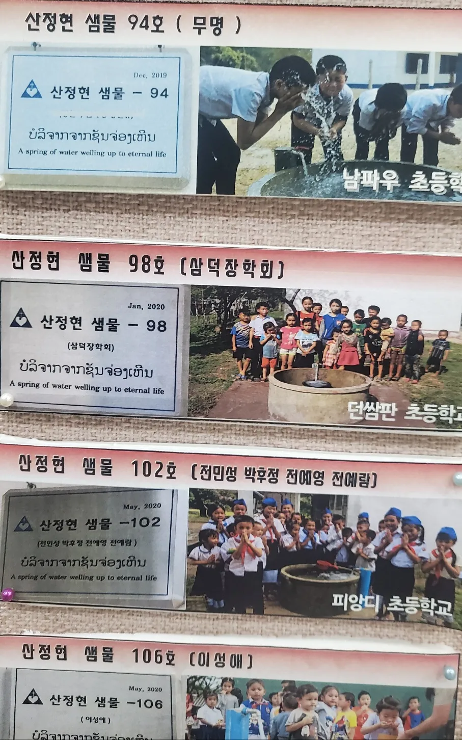 라오스 봉촉 학교의 우물 공사를 지원하였으며, '산정현 샘물 98호'를 통해 던쌈판 초등학교에 깨끗한 식수 시설을 완공했습니다.
